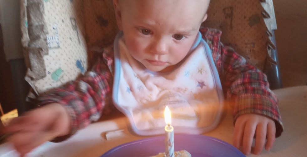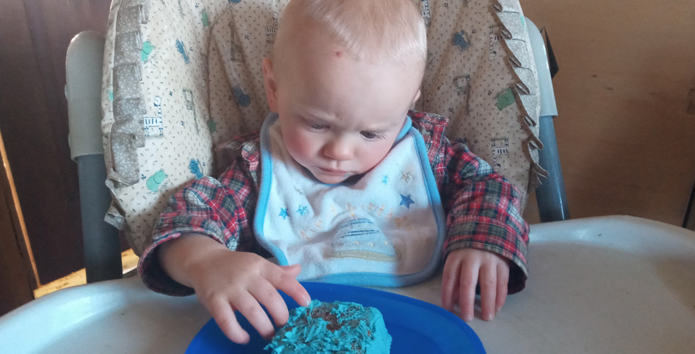 Flint is 1 year old! He wasn't as messy with his cake as we expected, but he was still pretty messy. For supper we had macaroni and cheese with summer sausage and peas. At breakfast, Flint "chose" to have Oreo cereal. He liked the food!